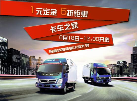 在6月18日至28日的10天期間,奧鈴CTX全系產(chǎn)品將被隨時搶購。只要通過預(yù)報名交訂金的方式,即6月18日中午12點之前報名并只需交納1元訂金,就可在12點整將福田奧鈴CTX2.8氣剎單排車型半價秒回家。此外,在卡車之家感恩回饋中,通過線上交納199元訂金,福田奧鈴全系產(chǎn)品將在店面最低價基礎(chǔ)上再優(yōu)惠1500元。6.18大促期間成功訂車用戶,更是有機會贏得俄羅斯豪華游的大獎。