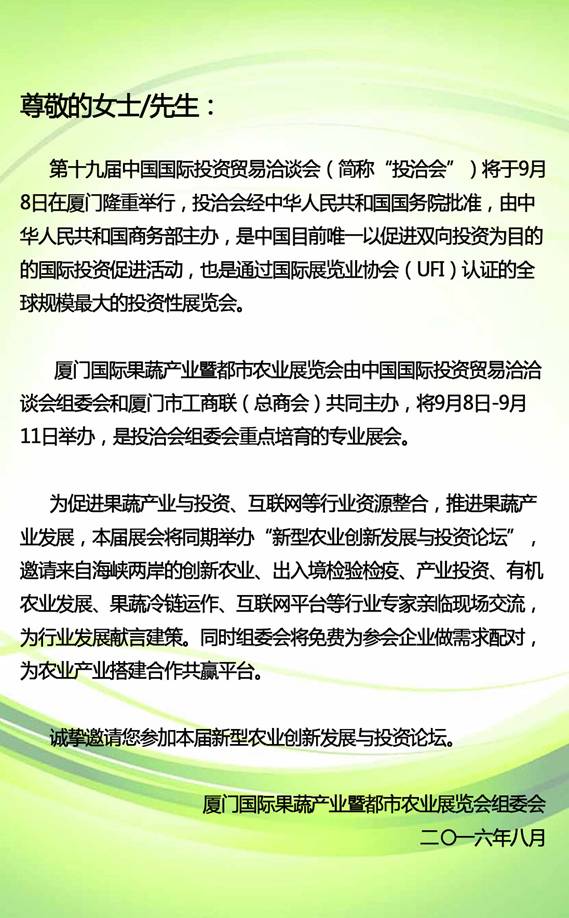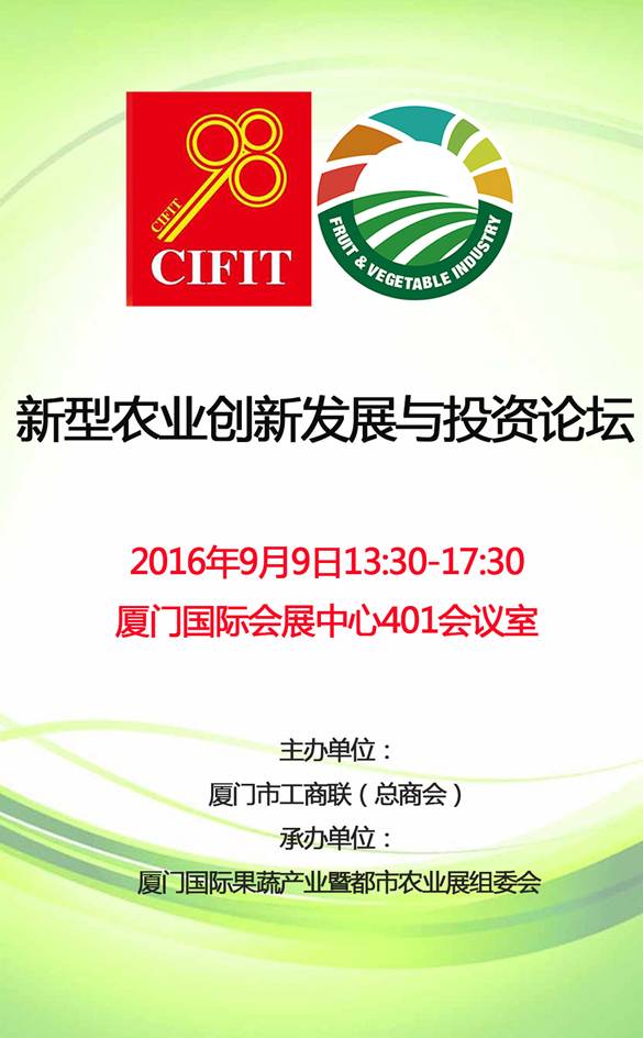 新型農(nóng)業(yè)創(chuàng)新發(fā)展與投資論壇將于9月9日召開 誠(chéng)邀您參加