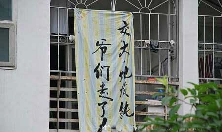 據報道,本月以來,西南交大的畢業生們紛紛以床單、枕套、被套等寫就“畢業宣言”懸掛宿舍樓外墻,網絡冠之以“最牛畢業宣言墻”。校方對這些“宣言”的清理工作仍在繼續。